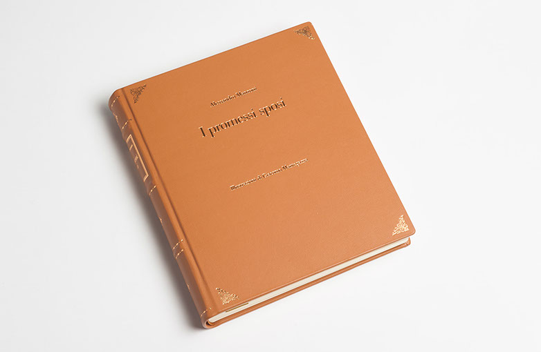 Rilegatura in pelle, cofanetto con testatine in pelle.