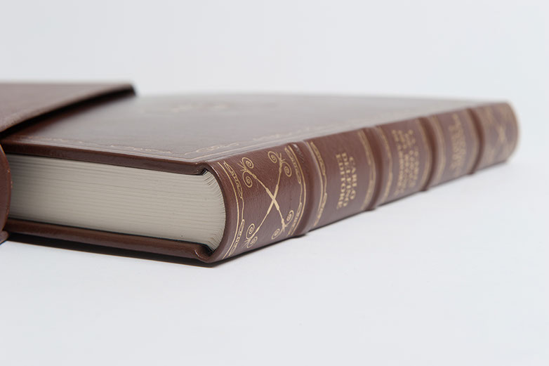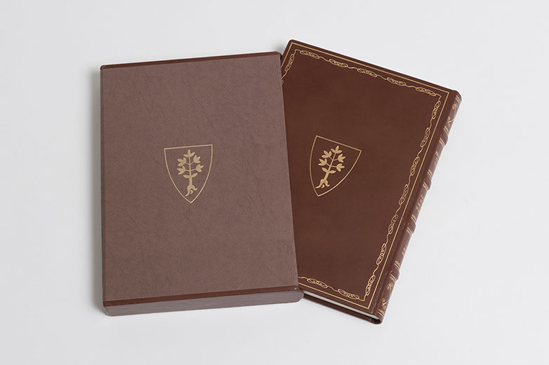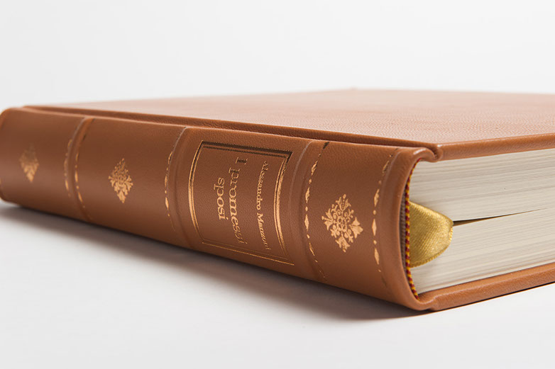 Rilegatura in pelle, cofanetto con testatine in pelle.
